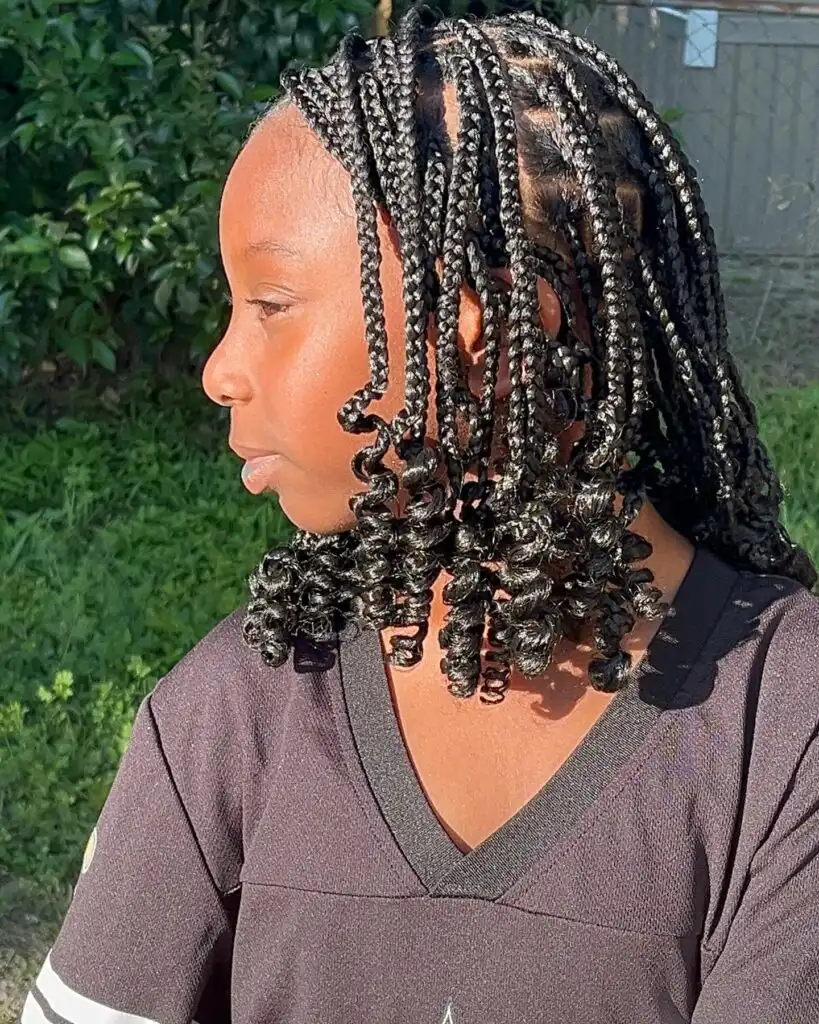 Perfect for kids or adults seeking a fun, youthful vibe, it’s also easy to maintain. To keep the curls shiny and well-shaped, spritz with a lightweight curl refresher. Adding small hair beads or cuffs can enhance the braids and bring more personality to the style.
