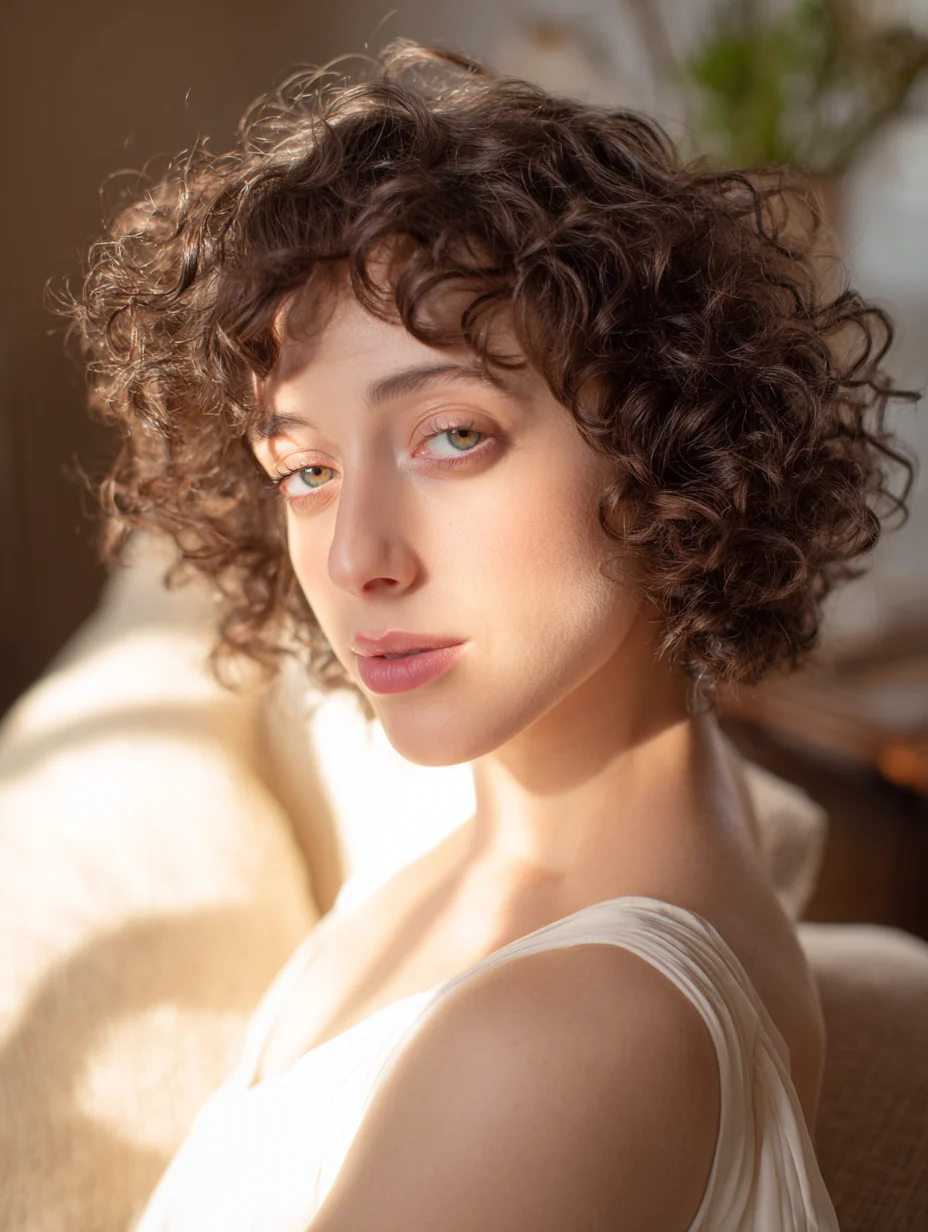 A short curly bob with a side part gives instant height to thin fine hair. The side part pushes curls upward on one side, which creates natural lift.