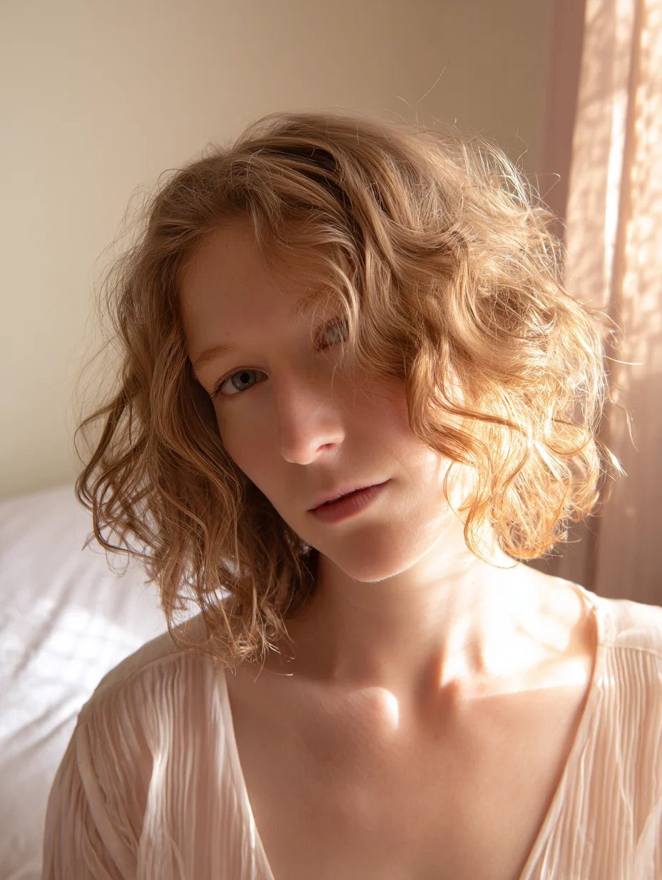 A curly bob with soft tapered ends keeps thin fine hair looking light and lifted. The tapered finish helps the curls gather without creating heaviness.