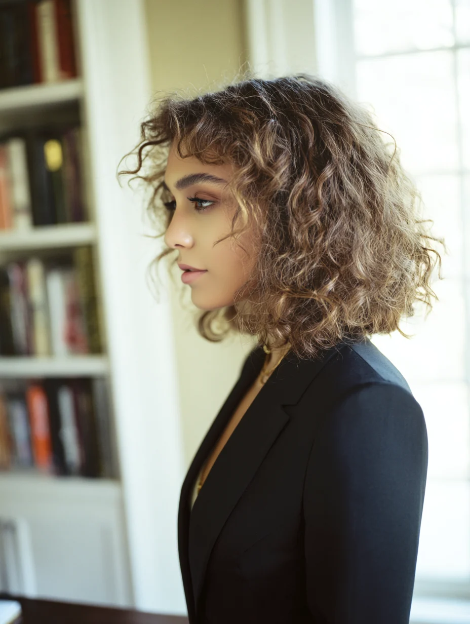 Keep the layers minimal to avoid disrupting the curl pattern. Use a light foam for definition. This style feels easygoing and looks natural because the angle creates subtle shape.