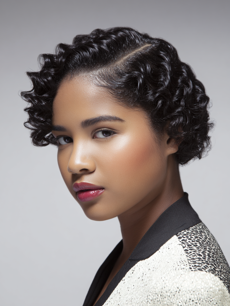 Defined curls add softness to the cropped shape. The final look feels modern, playful, and confidently expressive for everyday wear.