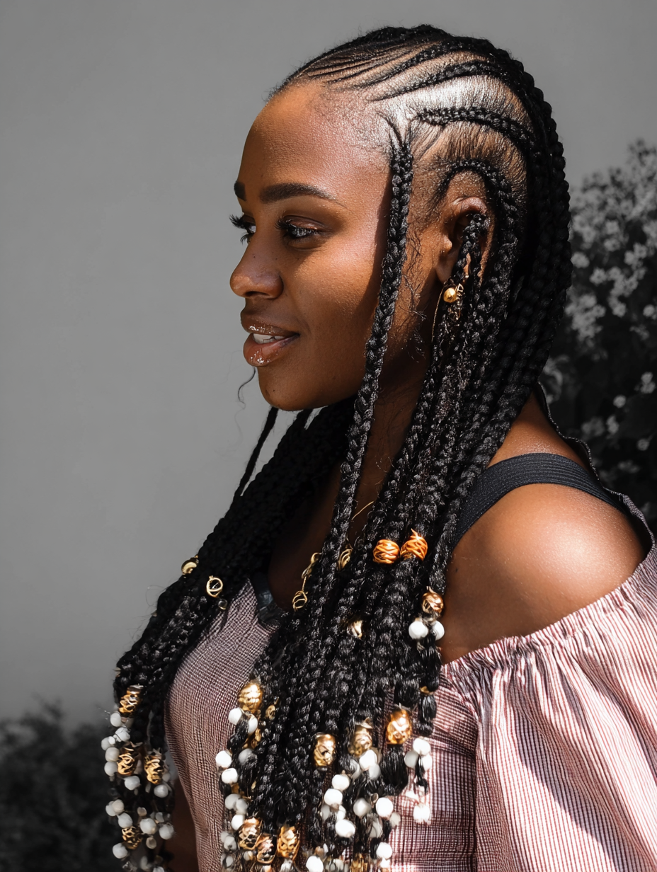 Fulani braids blend culture and cuteness with braided patterns and decorative beads.
