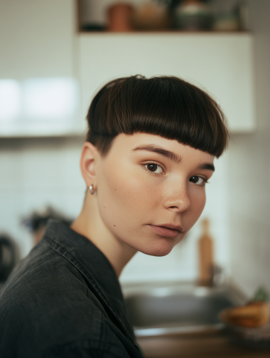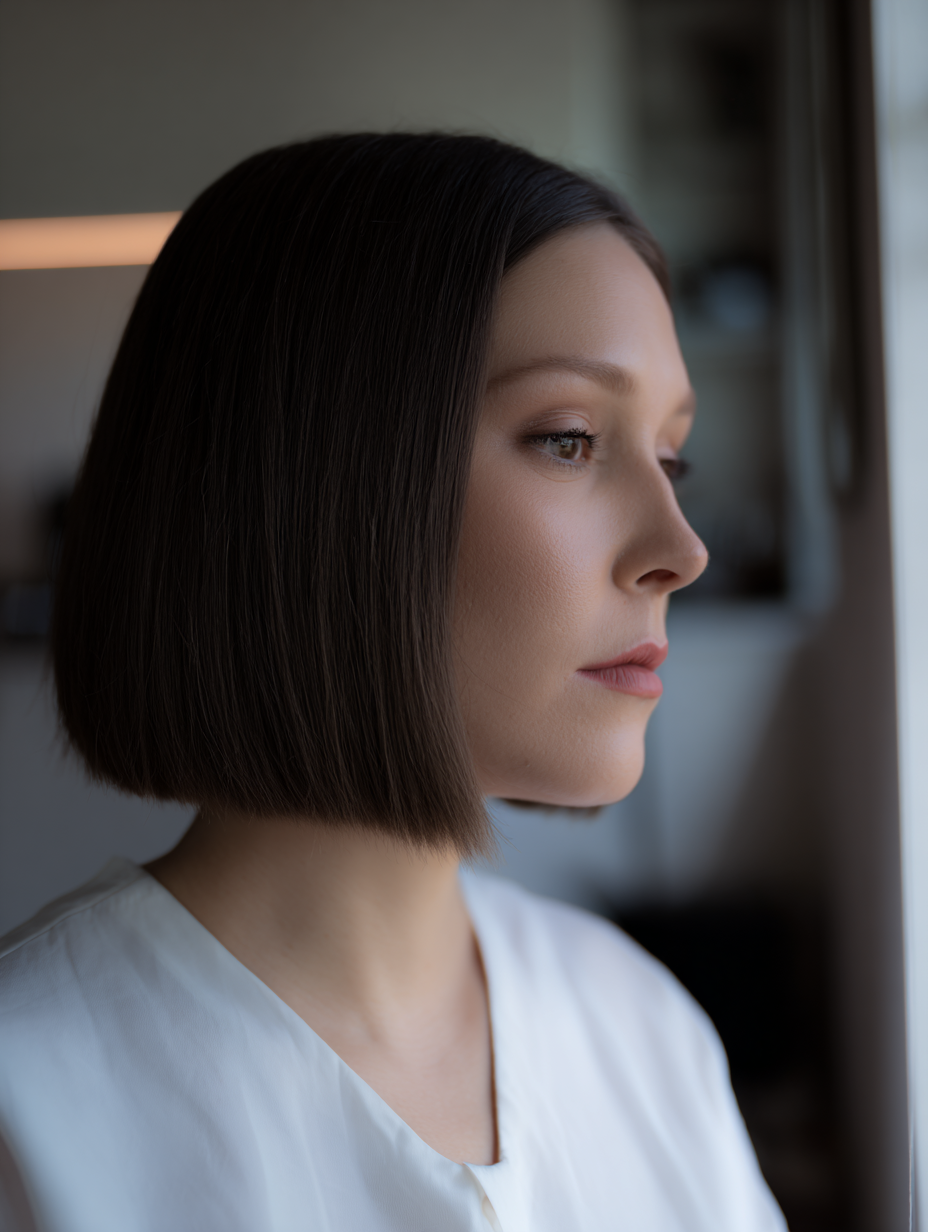 A blunt short bob offers a clean finish for anyone who prefers tidy shapes. The straight edges line up evenly, giving the cut a sharp but controlled look.