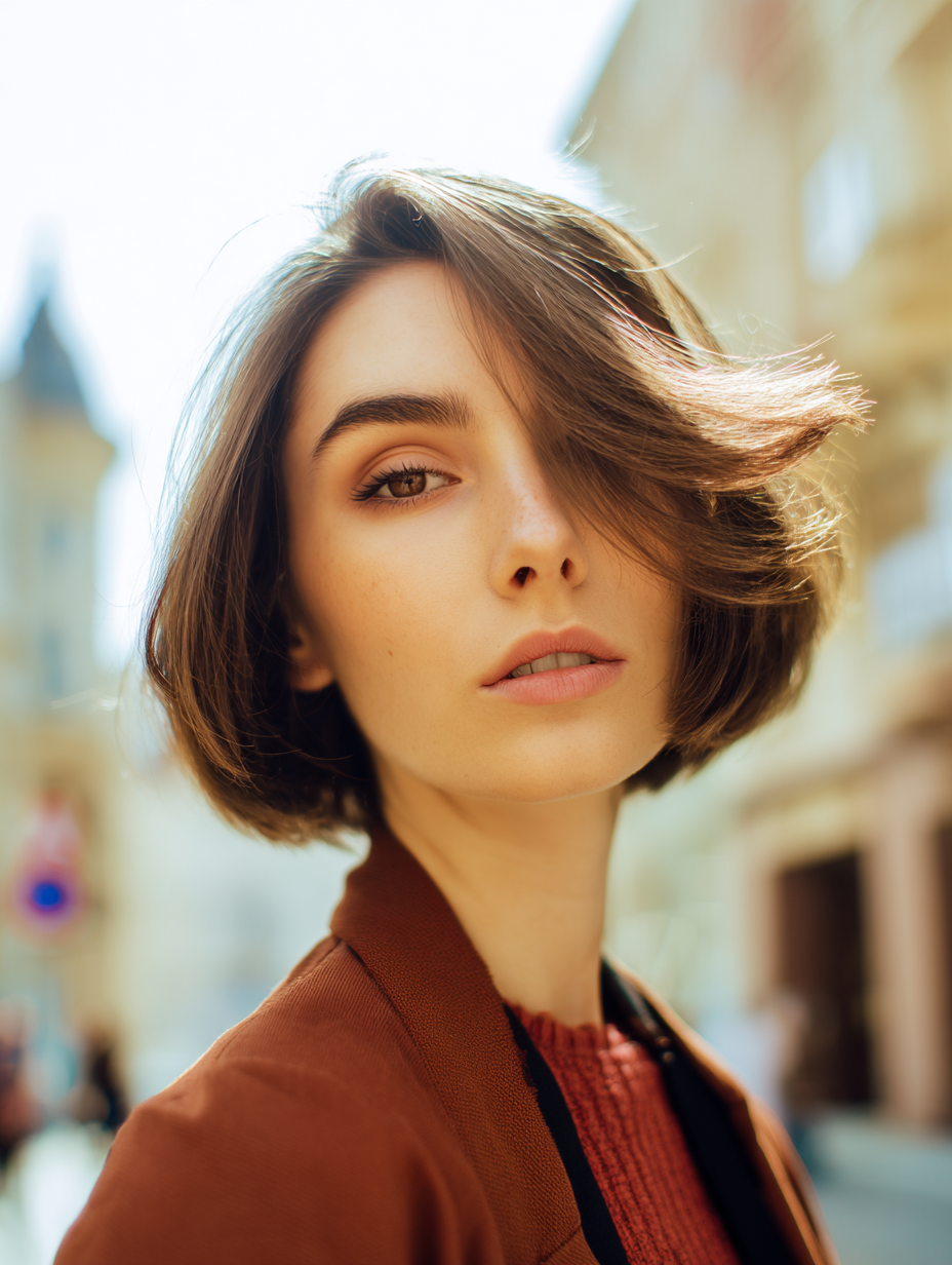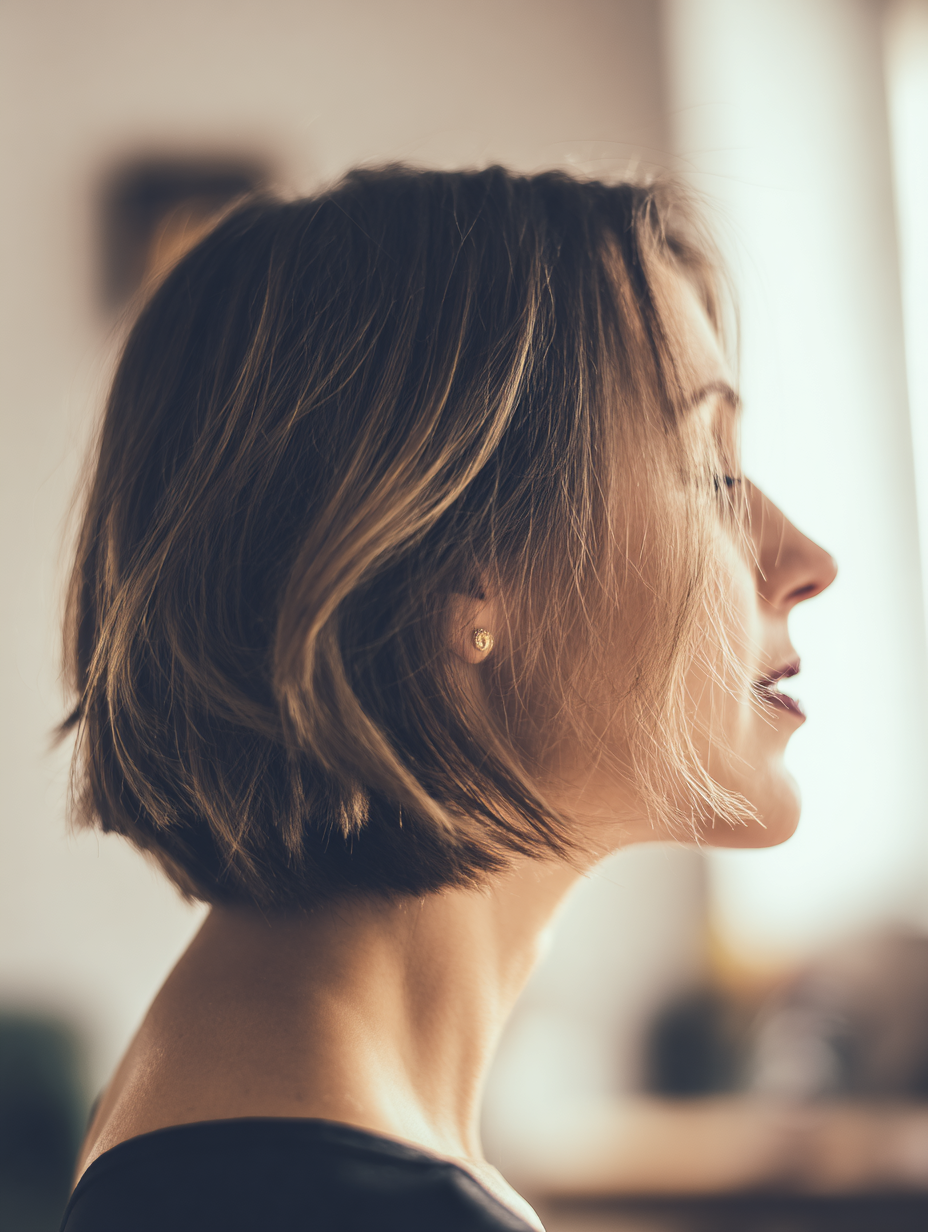 A short bob with a side flip brings energy to your hair with little effort. You push one side upward, creating a lifted shape that brightens your face.