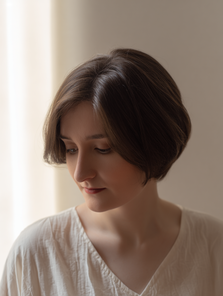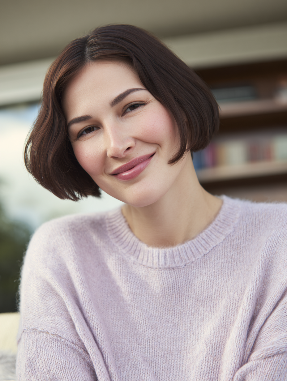 A short rounded bob forms a soft curve around your face. Light layers add movement and prevent the cut from appearing too heavy.