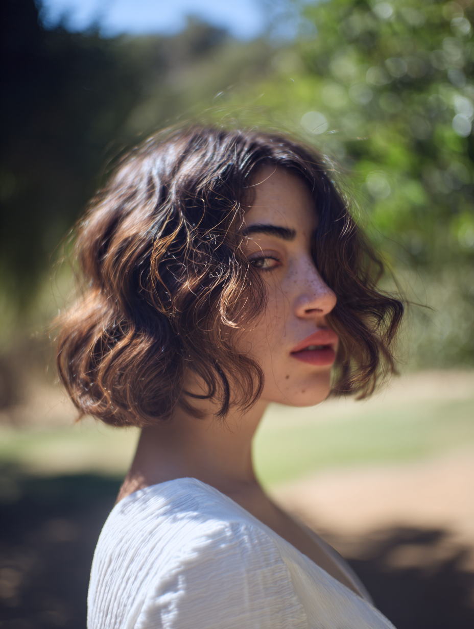 A short wavy bob uses gentle layers to support natural waves. The layers prevent the shape from feeling heavy while still keeping enough structure.