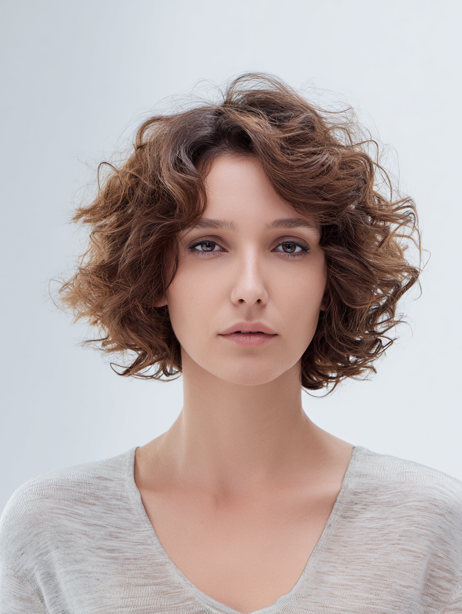 A chin-length cut helps balance proportions while keeping curls controlled and easy to manage.