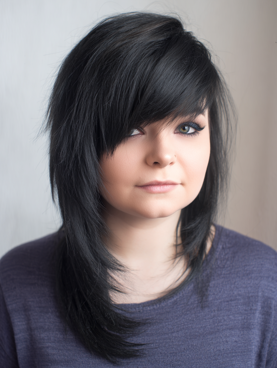 A deep side fringe sets this emo shag apart, creating drama without overpowering the face.