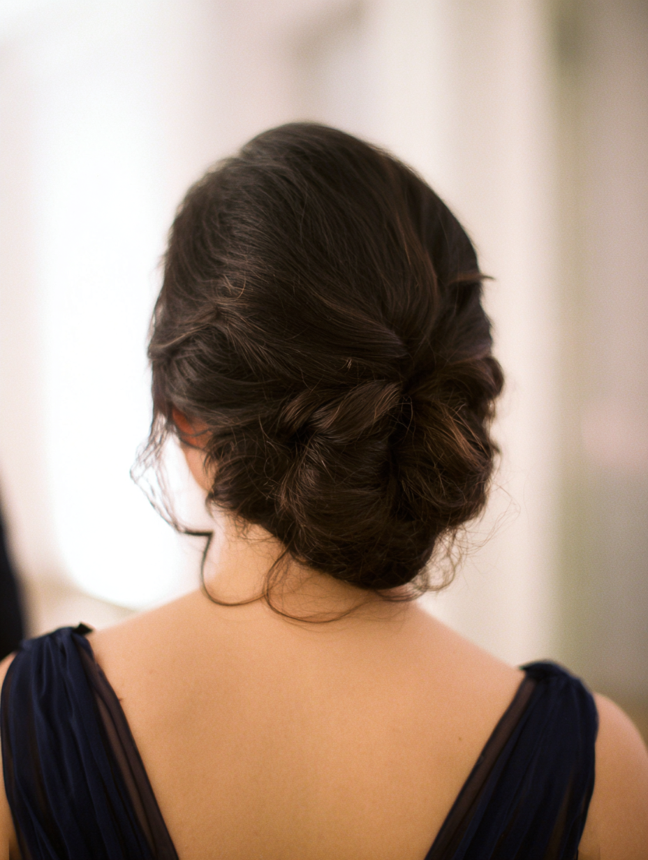 A softly gathered chignon resting at the nape feels timeless, graceful, and quietly luxurious for special occasions.
