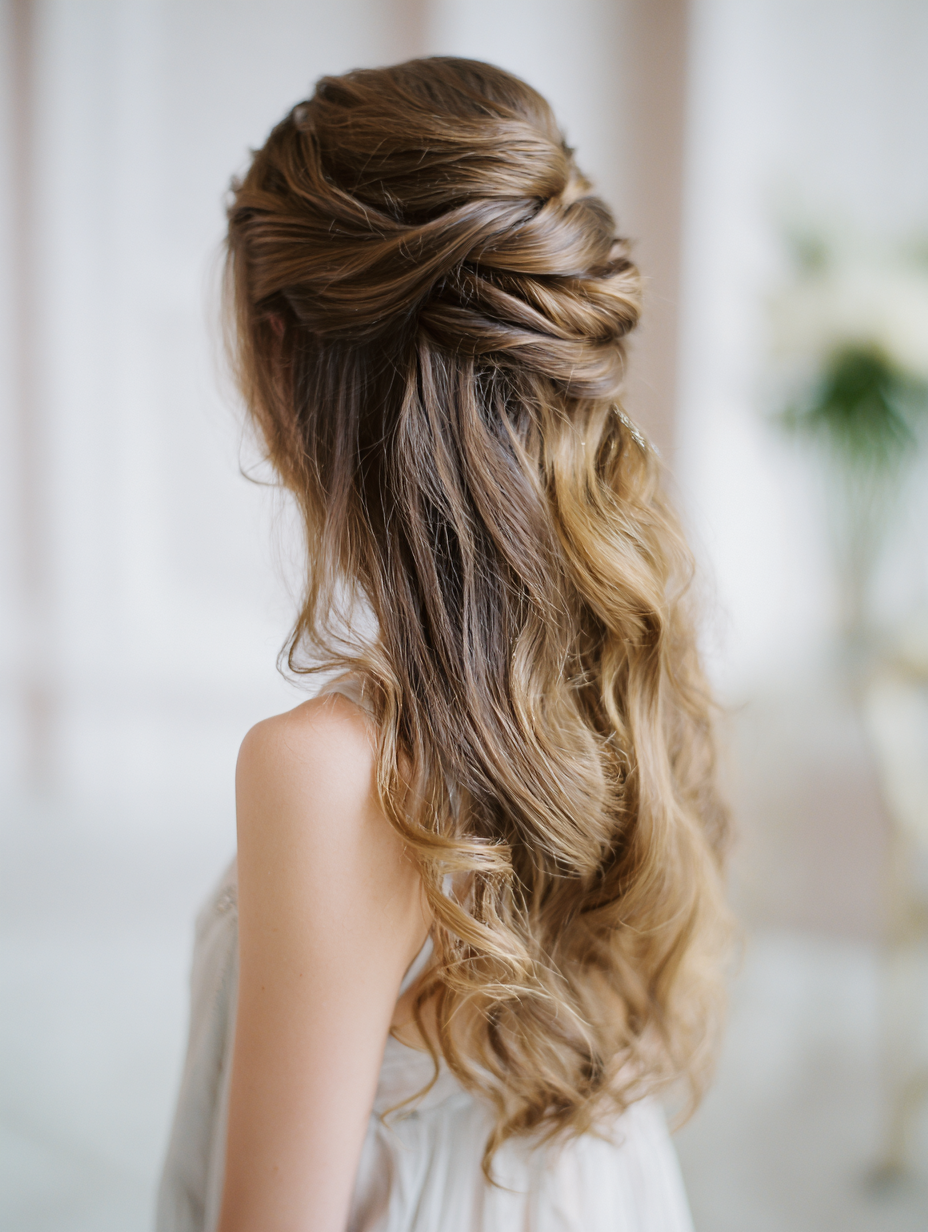 This hairstyle works wonderfully with embellished dresses and delicate jewelry.