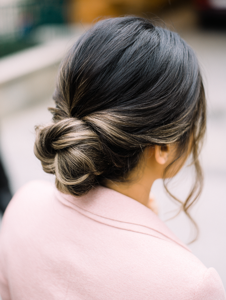 A low twisted bun feels elegant but slightly relaxed, making it great for weddings or evening events.