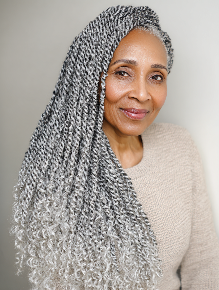 Gray crochet braids hairstyles for older women offer a stylish, protective way to embrace natural silver tones with confidence.