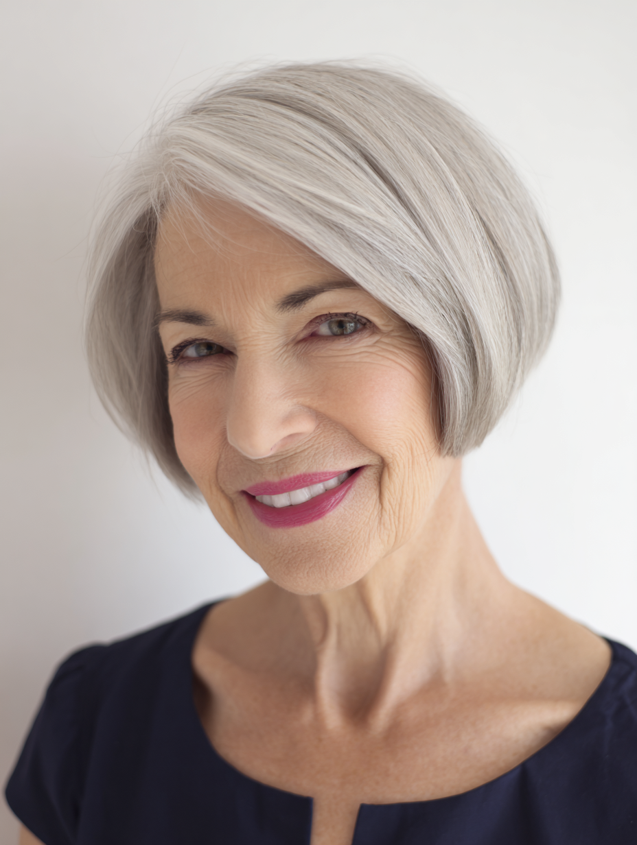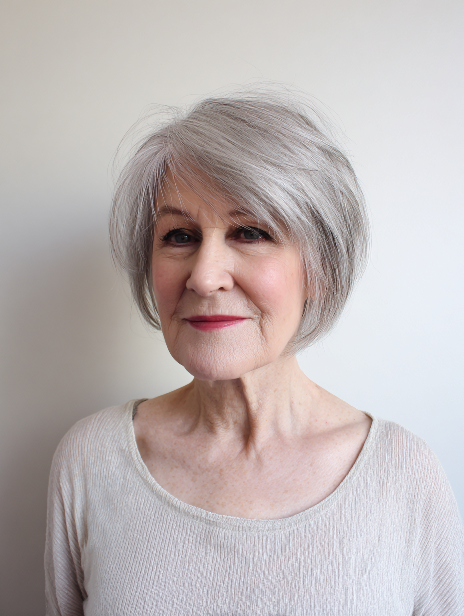 Air drying works well, though quick blow drying adds polish. Regular trims keep the edges neat. This haircut suits relaxed routines and supports hair that feels finer with age.