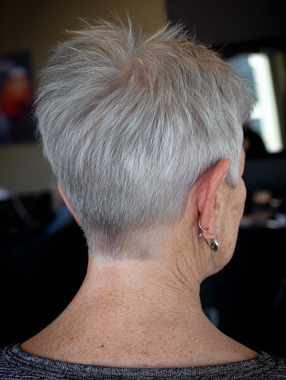 This cut embraces natural gray tones with a simple shape. Length stays short and even for consistency.