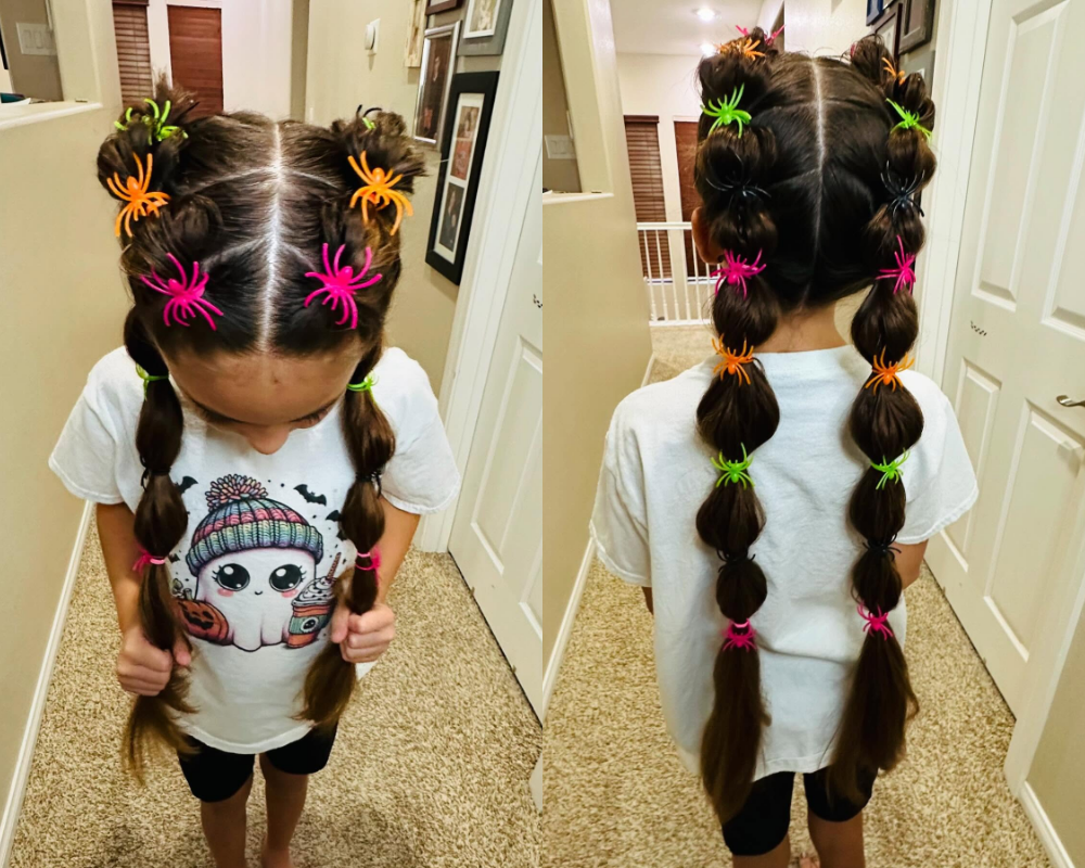 Bubble Braid Spider Halloween Hairstyle for Kids