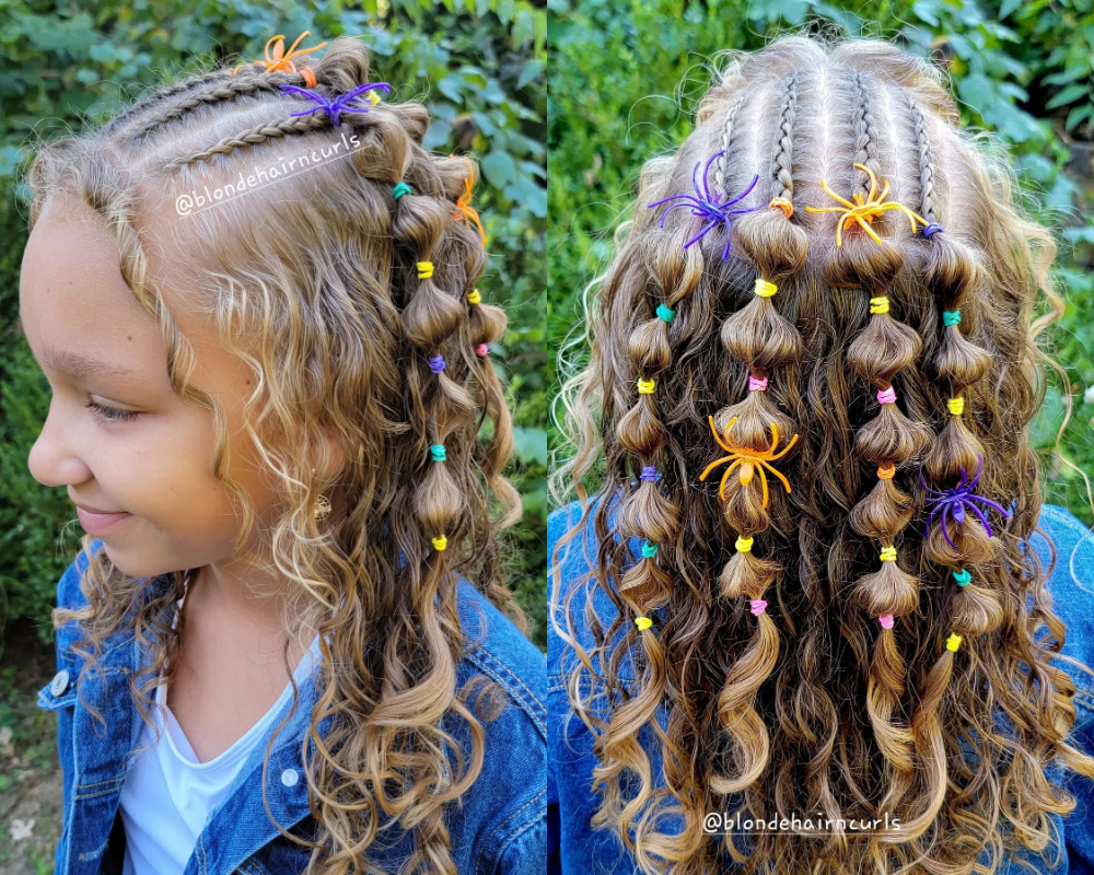 Colorful Spider Bubble Braids Halloween Hairstyle for Kids