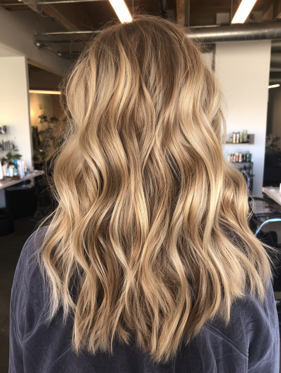 Sandy blonde highlights add a soft, beach-inspired brightness that pairs naturally with dirty blonde hair.