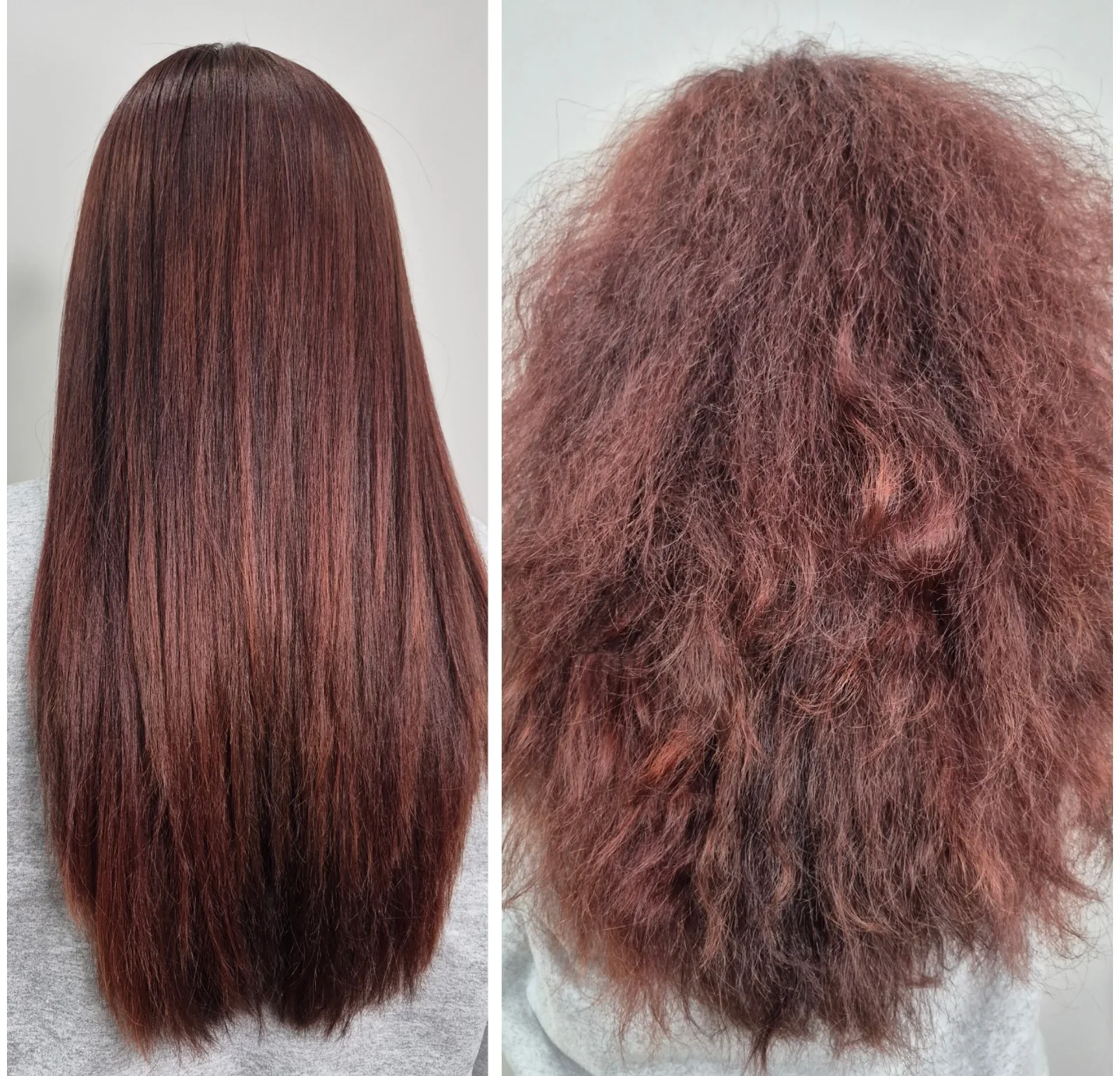 Humidity pulls moisture from the air into your dry strands. This causes each hair’s outer layer to swell and lift. The result looks like a cloud around your head.