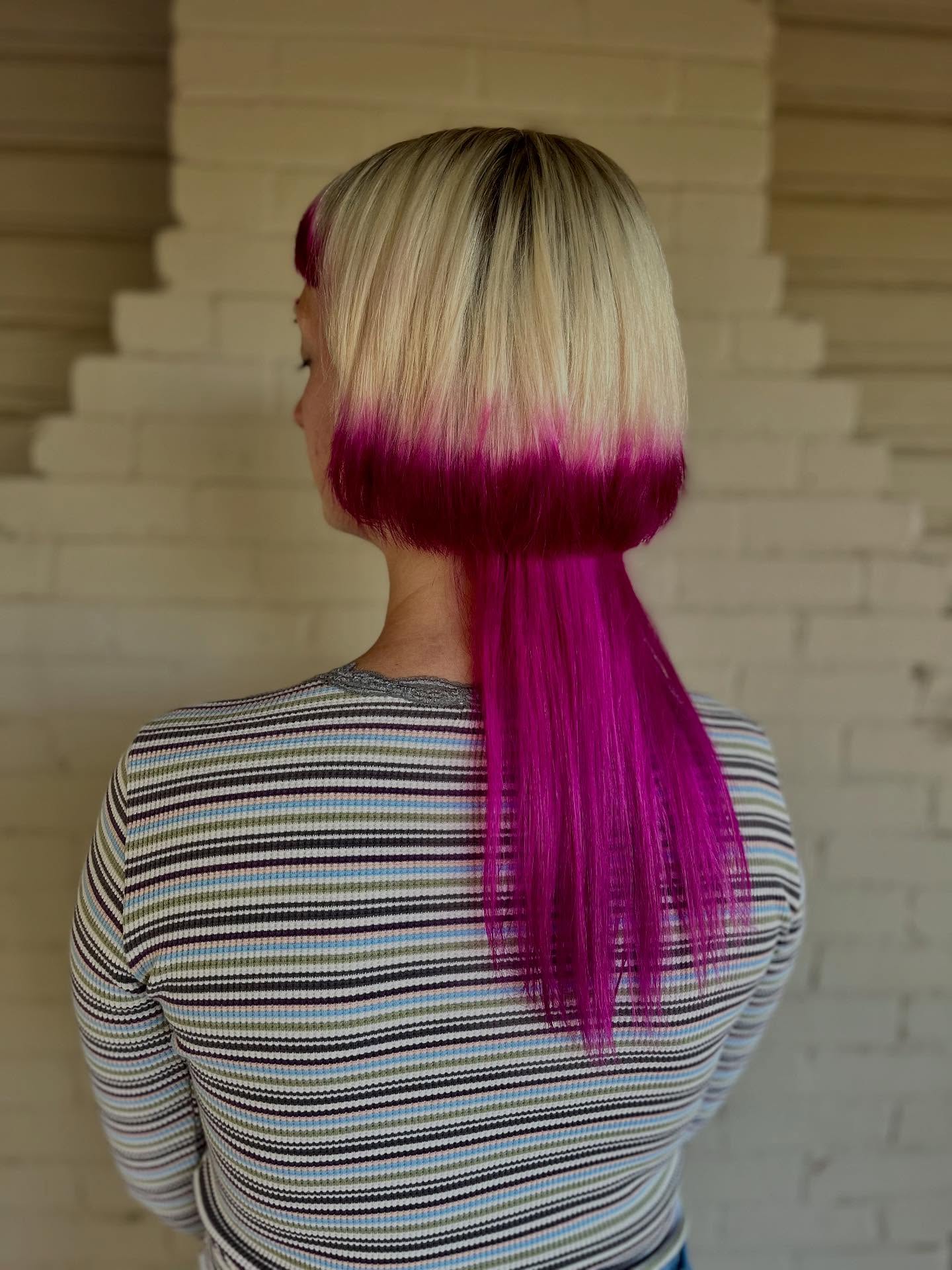Blonde Dip Dye Jellyfish Haircut with Vibrant Pink Underlayer