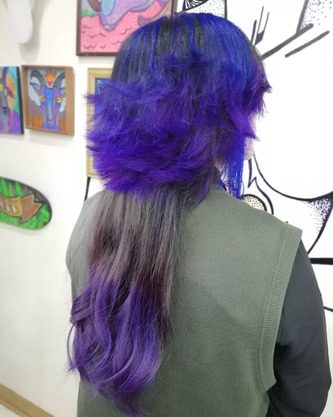 Black and Purple Jellyfish Haircut with Soft Curled Lengths