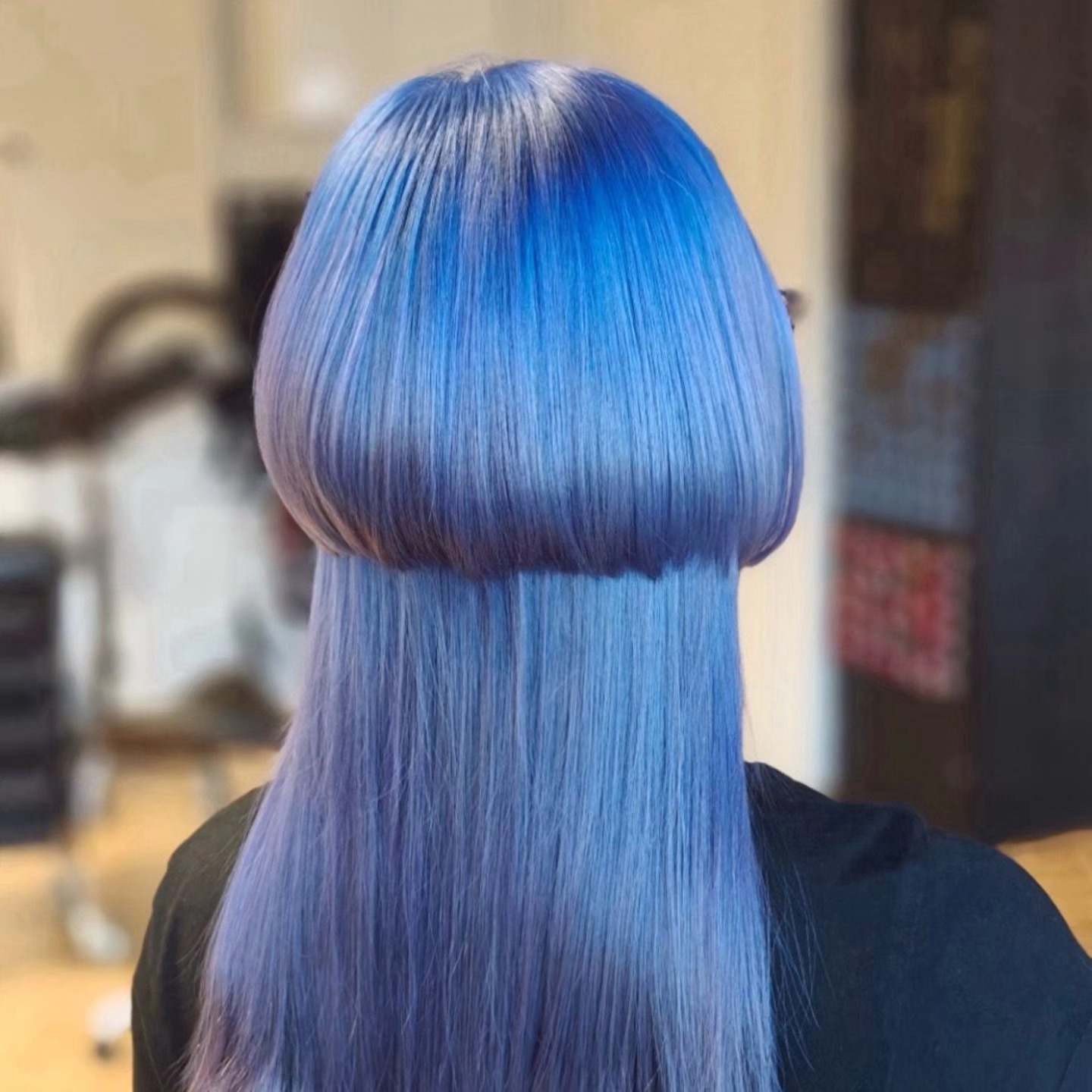 Icy Blue Jellyfish Haircut with Glossy Blunt Layers