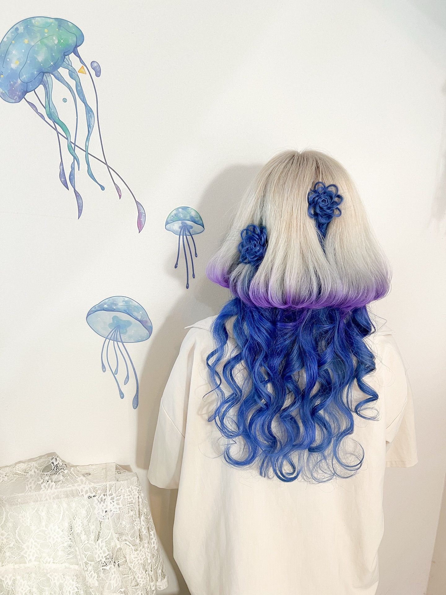 This jellyfish haircut leans fully into its ocean theme with bold color and texture contrast.