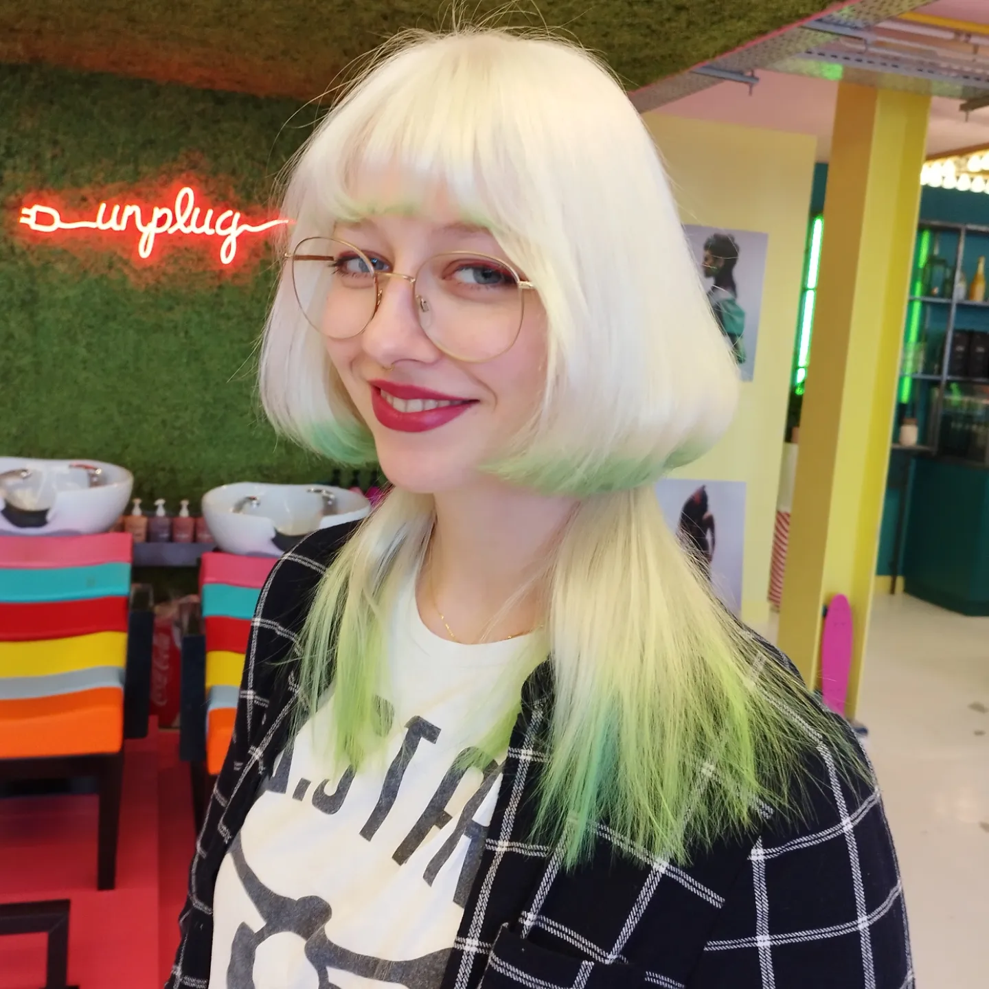Platinum Jellyfish Haircut with Soft Green Ombre Ends