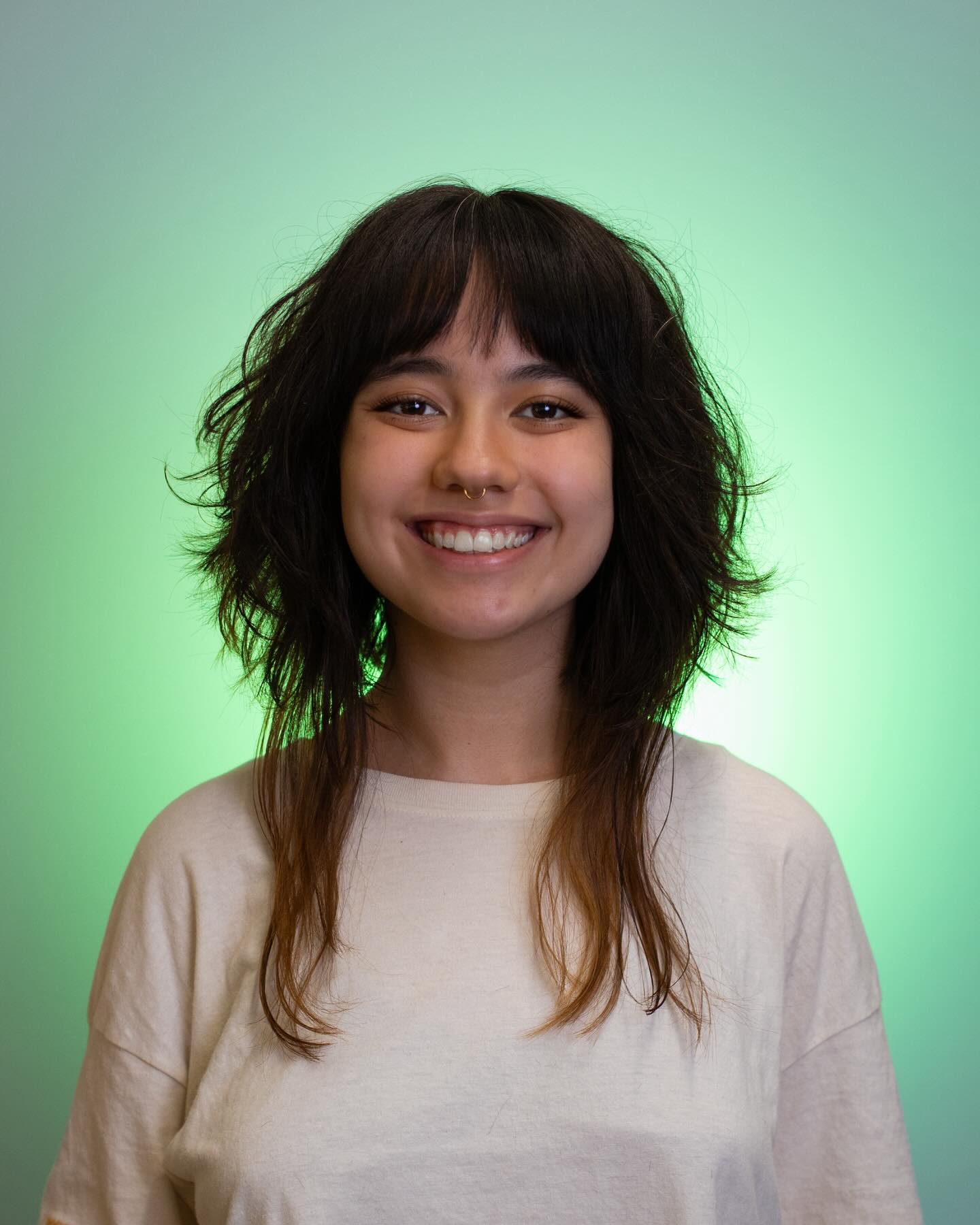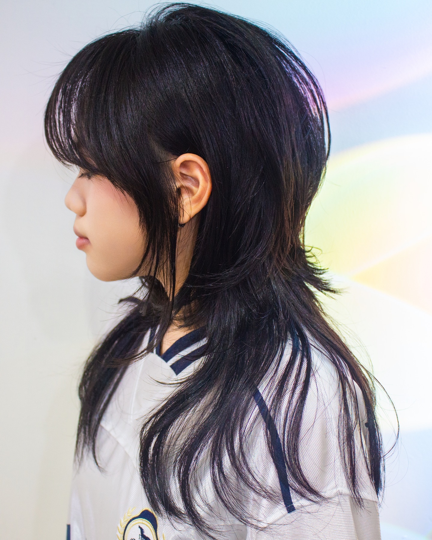 This jellyfish haircut leans into a shag-inspired finish, creating a softer and more relaxed shape overall.