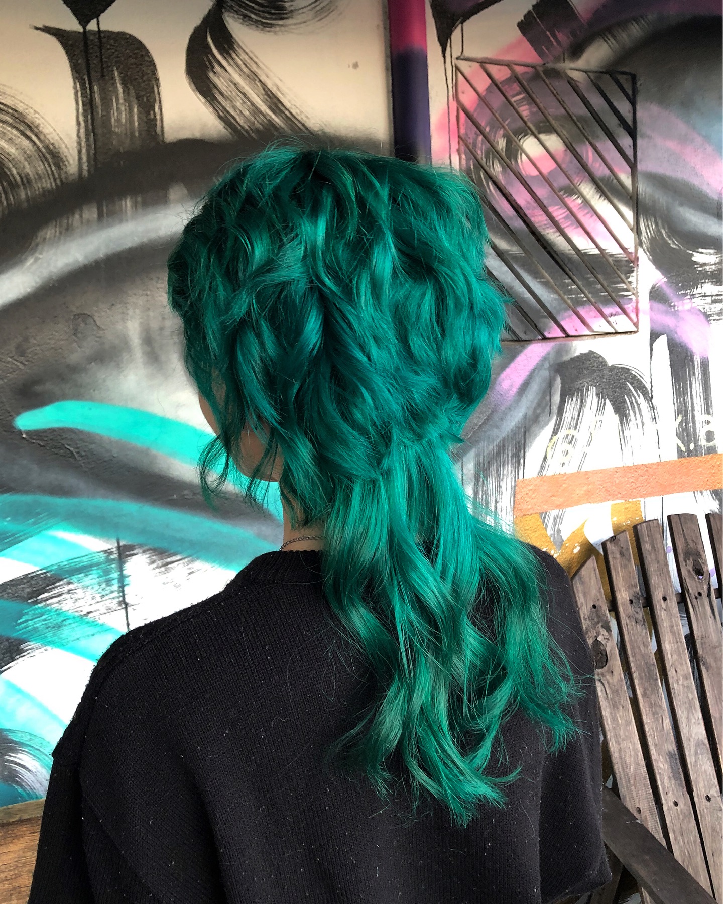 Teal Shag Jellyfish Haircut with Choppy Layers and Long Waves