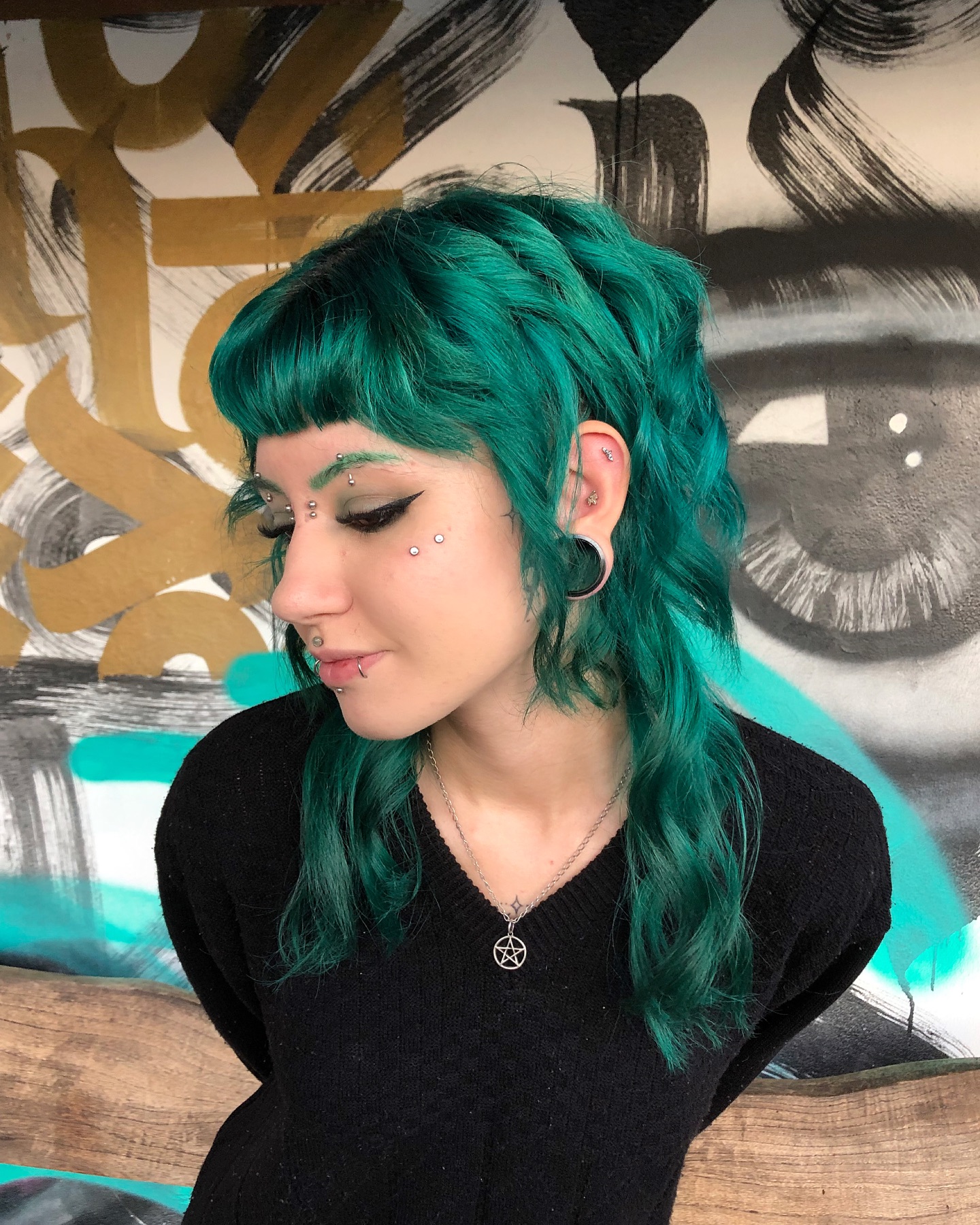 Mint Green Jellyfish Haircut with Rounded Blunt Layers