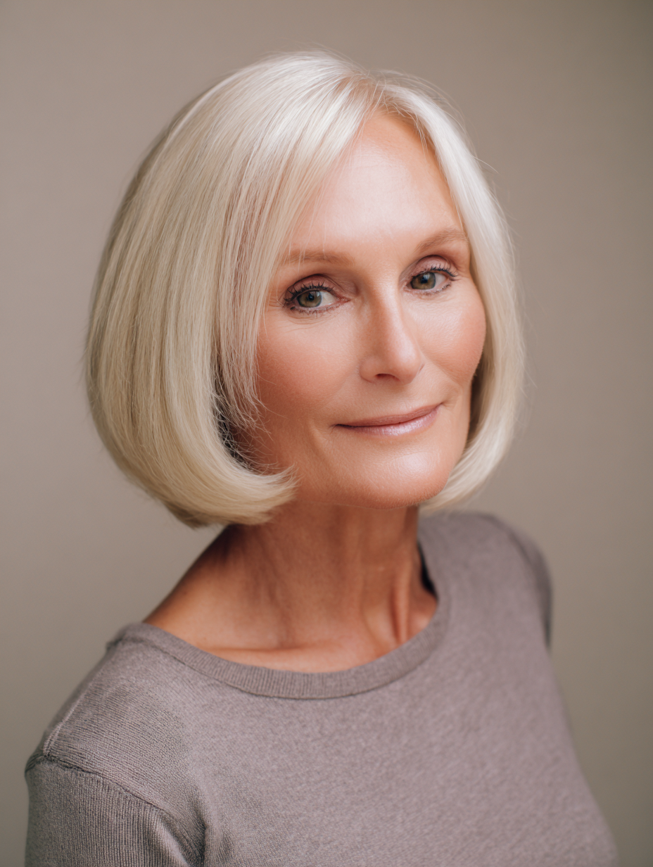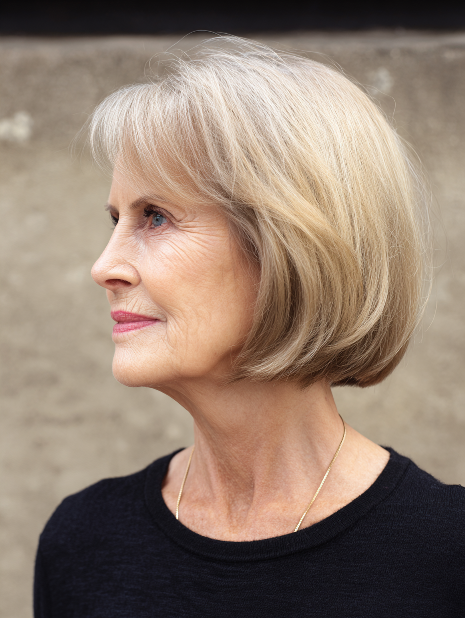 A layered bob with crown lift adds subtle height where volume often disappears.