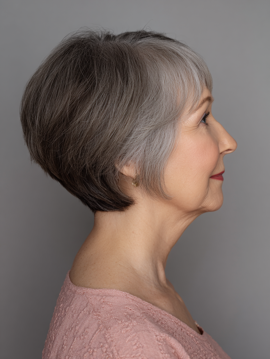 A short layered bob with nape shaping offers a clean outline that still feels modern and soft.