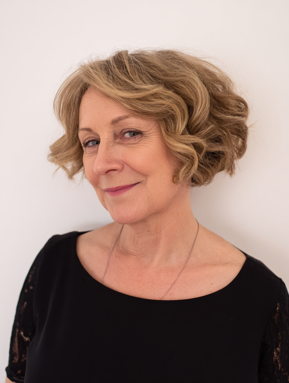 A layered bob with light curls creates gentle movement that feels soft and natural. The layers allow the curls to fall evenly, preventing the style from appearing bulky or uneven.