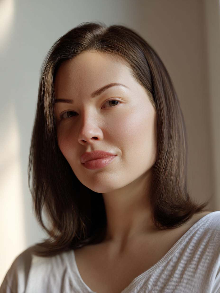 A medium straight cut with subtle face layers gives a clean, polished look that suits everyday routines. The layers stay soft, so they don’t create harsh lines around fuller features.