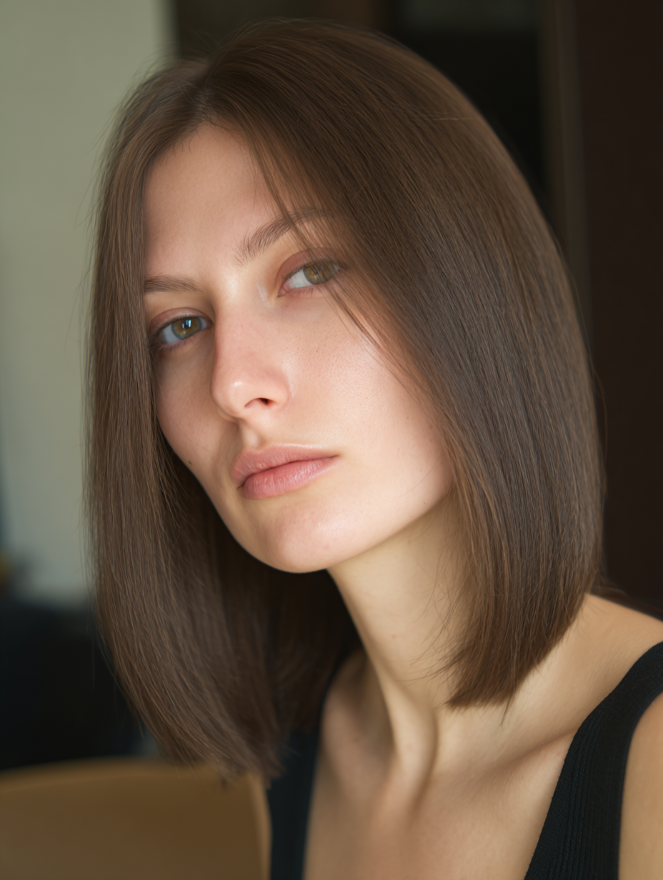 The length sits nicely at the shoulders, which makes it a practical choice. This style works well for anyone who wants sleek lines without creating extra width along the jawline.