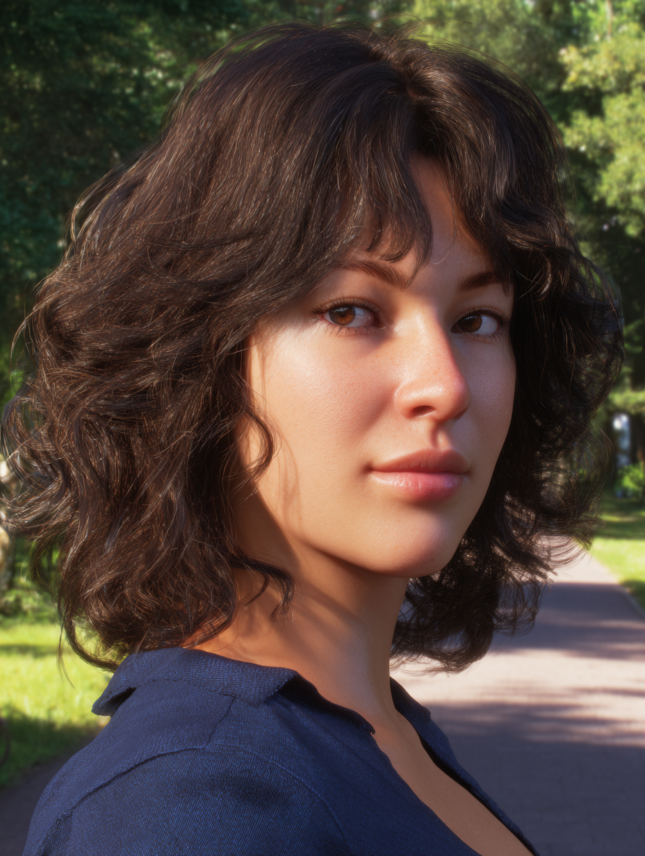 The curls fall gently and help elongate the overall shape. You can define them more when you want polish or separate them for a softer look.