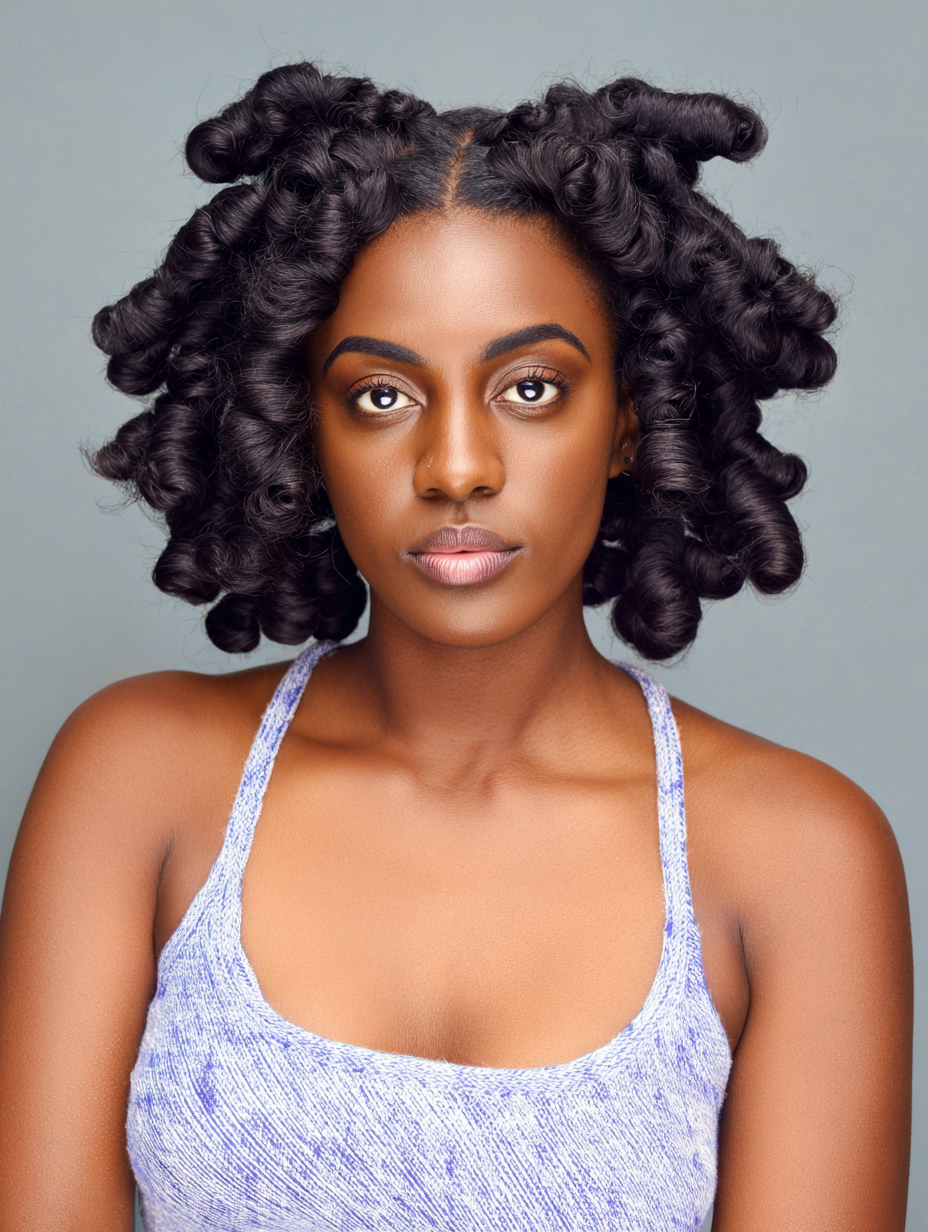 Bantu knot outs create defined spirals that fall beautifully at medium length.