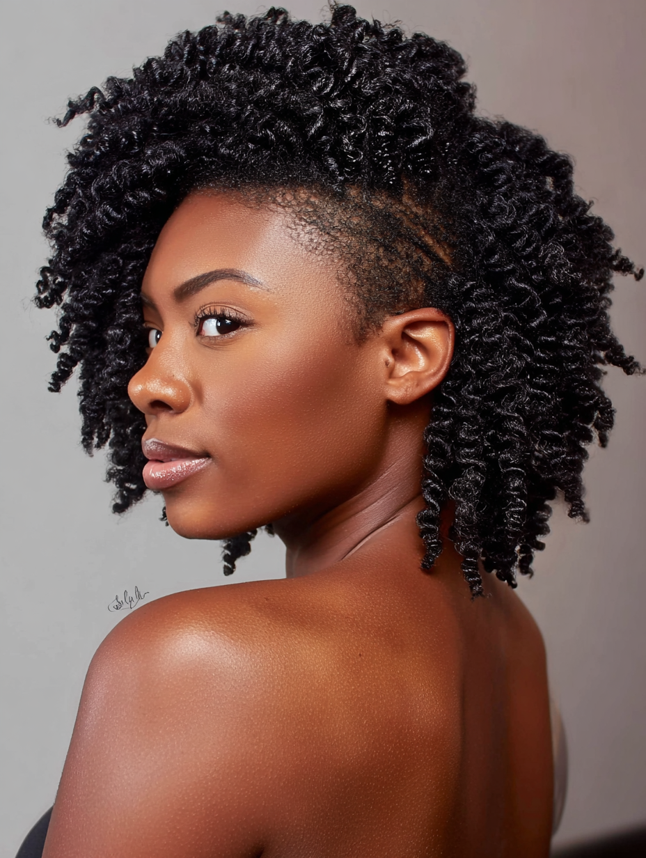 Moisture plays a huge role here because hydrated coils maintain shape longer. Stretching the hair slightly during drying helps you guide the final silhouette.
