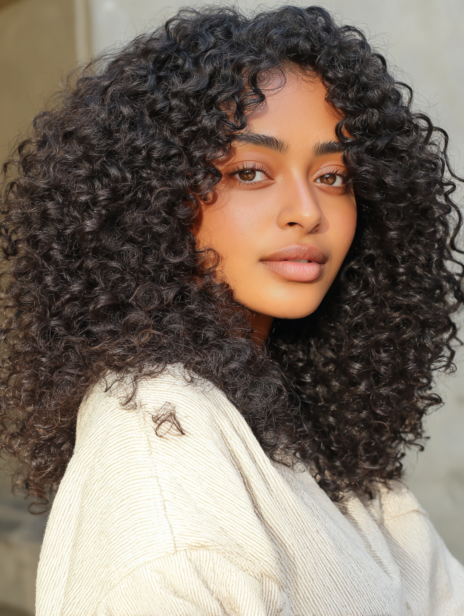 Layering breaks up density and keeps the curls from forming one solid mass. Hydrating creams maintain definition and reduce frizz.
