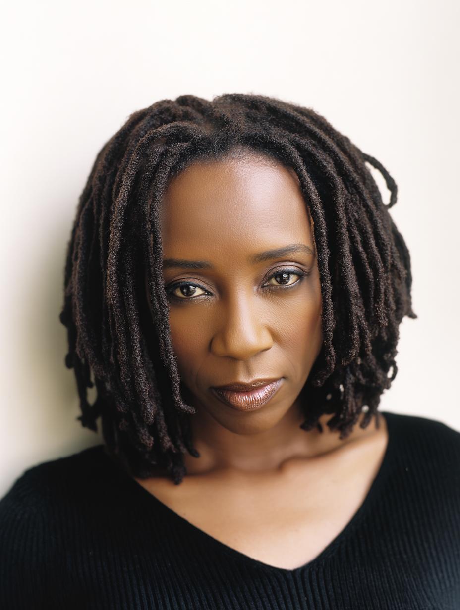 Light layering shapes shoulder length locs without removing fullness.