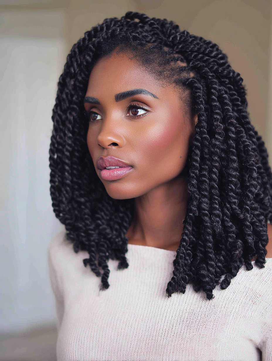 Marley twists offer a textured finish that feels natural and lightweight at medium length.