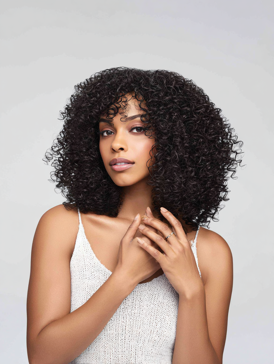 Structured layers give natural curls room to open up and form balanced volume across the head.