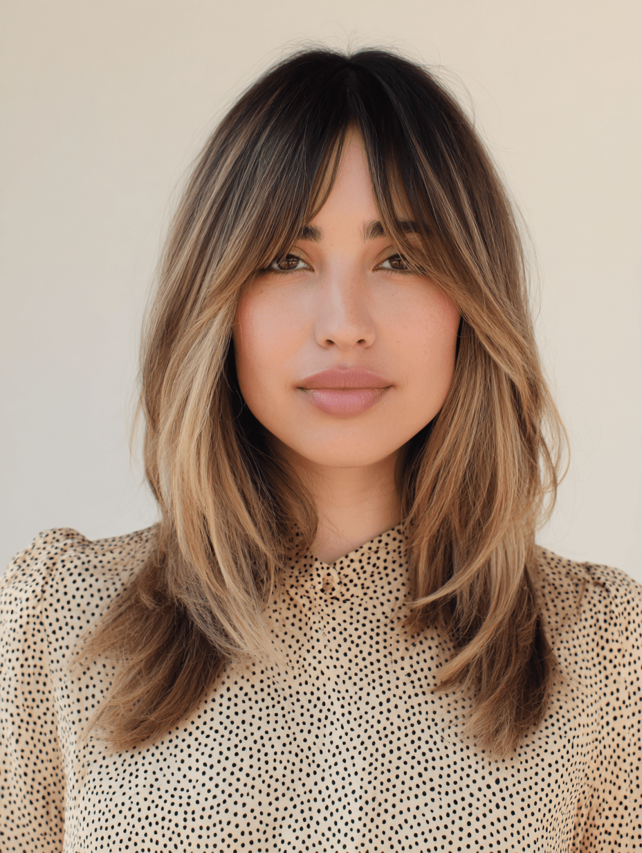 Soft fringe pieces help frame the eyes while keeping the face open and balanced. This style feels modern, slightly undone, and easy to maintain with minimal styling effort.