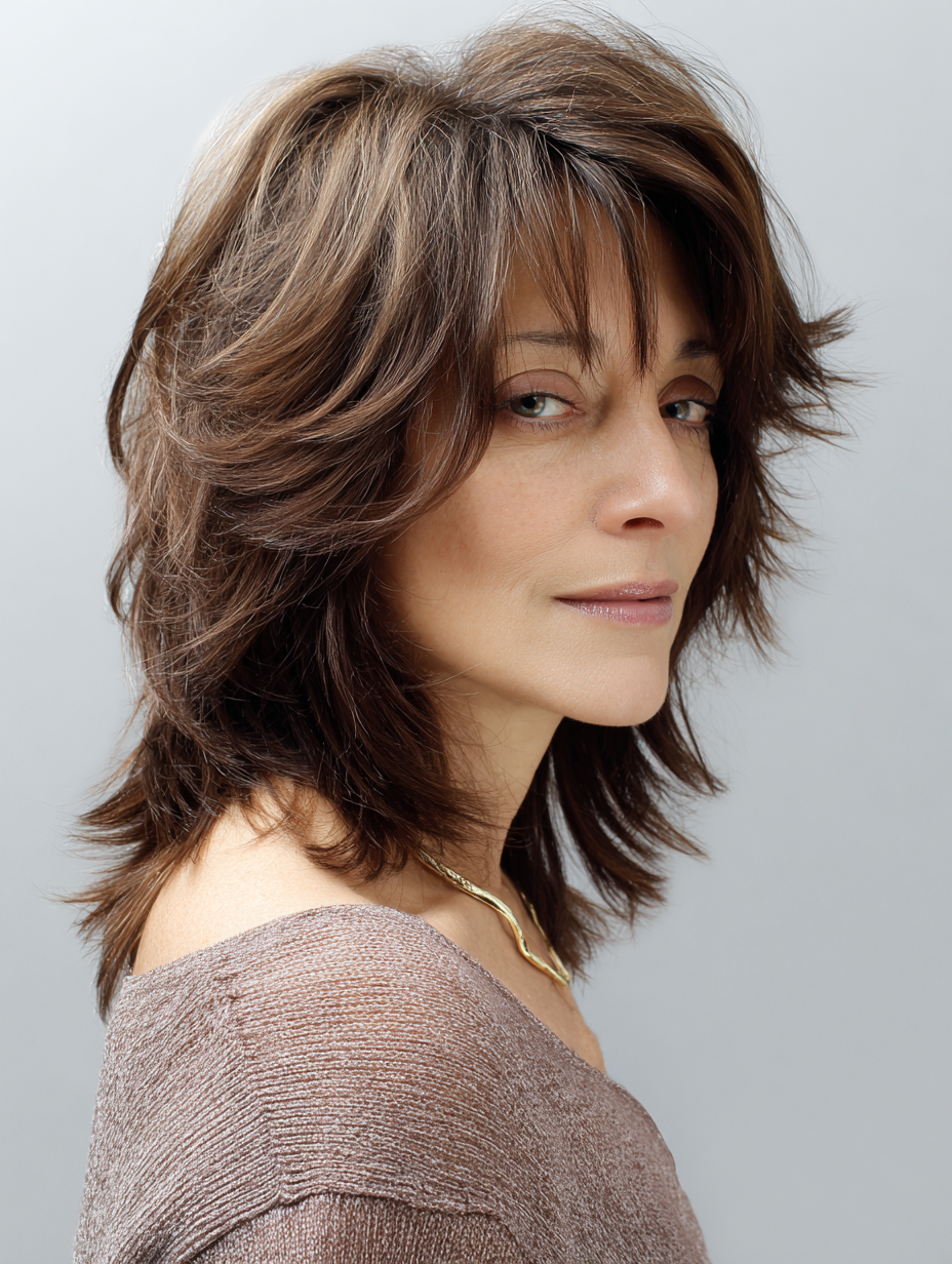 Shoulder Length Layered Shag with Volume at Mid-Lengths