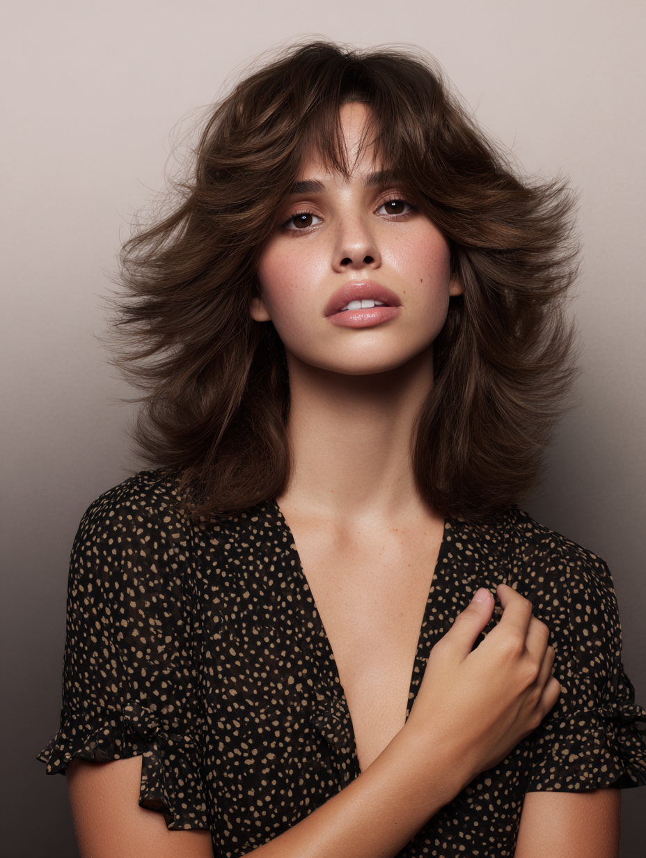 Flipped out ends add a retro touch, blending nostalgic flair with fresh layering. A round brush or straightener creates that curved-out finish easily.