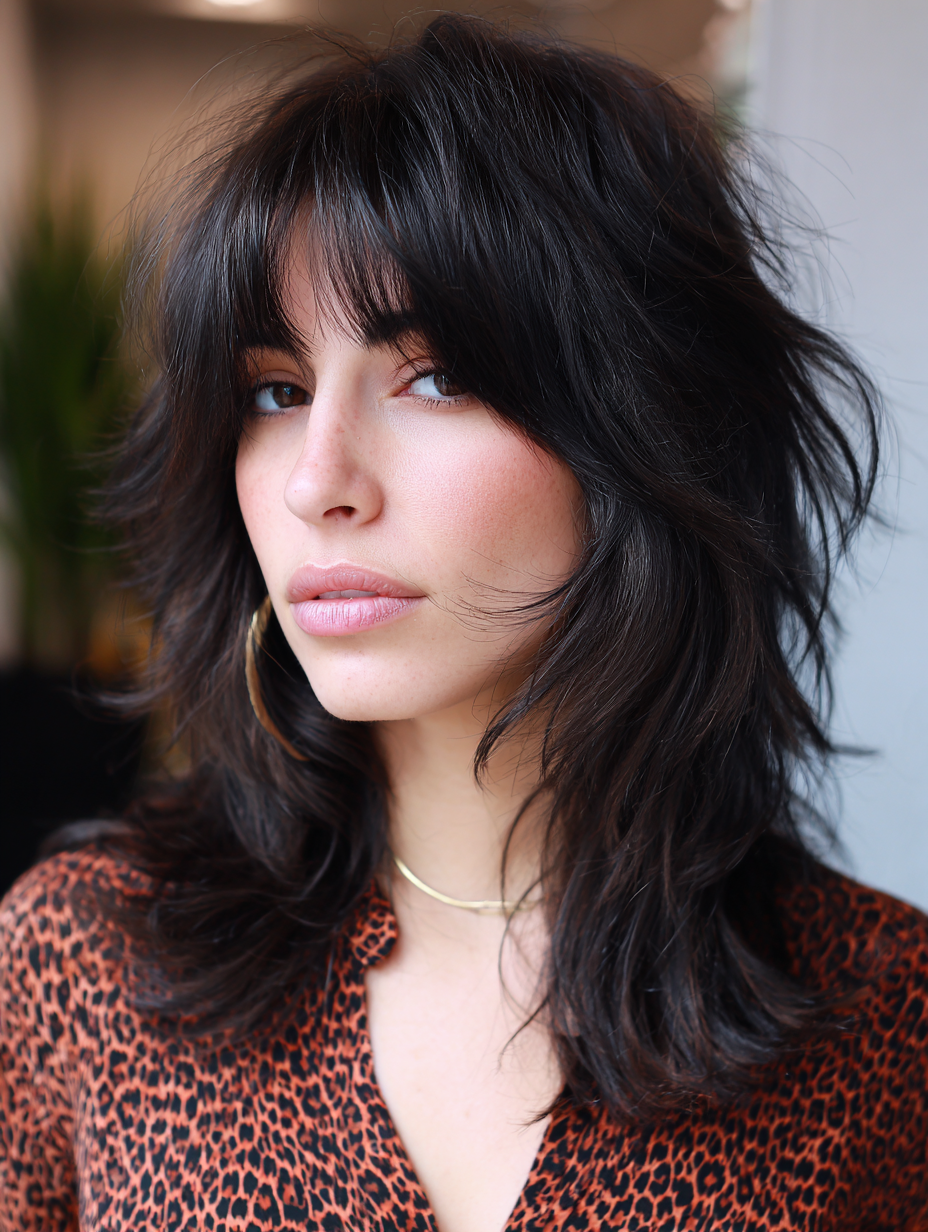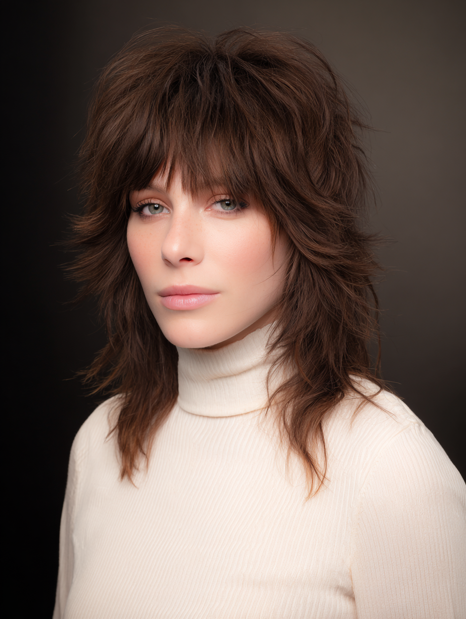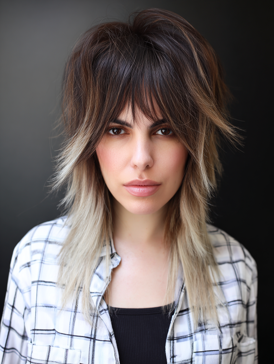 Blended bangs melt seamlessly into the side layers, making this shag feel cohesive.