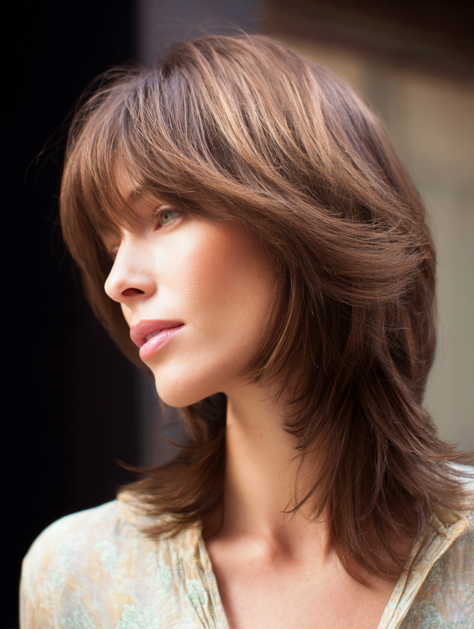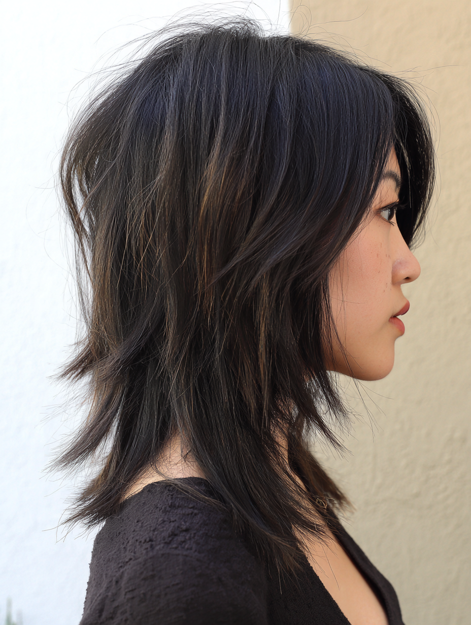 Internal layering creates dimension without obvious choppiness in this modern shag. The surface stays smooth, while hidden layers add movement and volume underneath. This makes the haircut versatile and easy to style in different ways. It works especially well for people who prefer subtle texture. Whether worn straight or lightly waved, the shape stays polished and intentional throughout the day.
