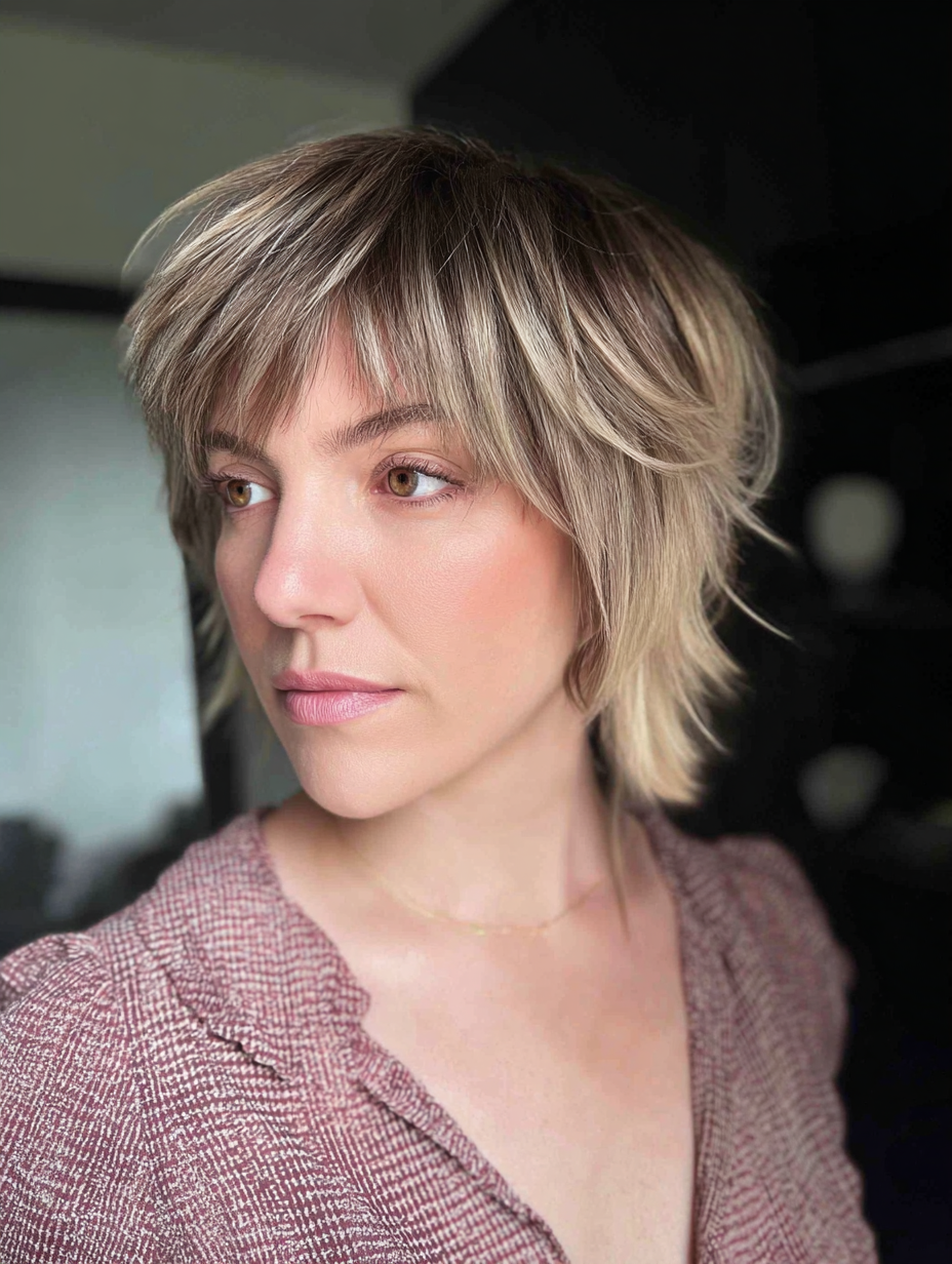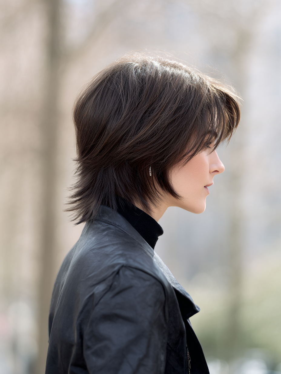 Short modern shags create strong texture and lift around the crown. They feel lightweight and work well for adding movement to flat hair.