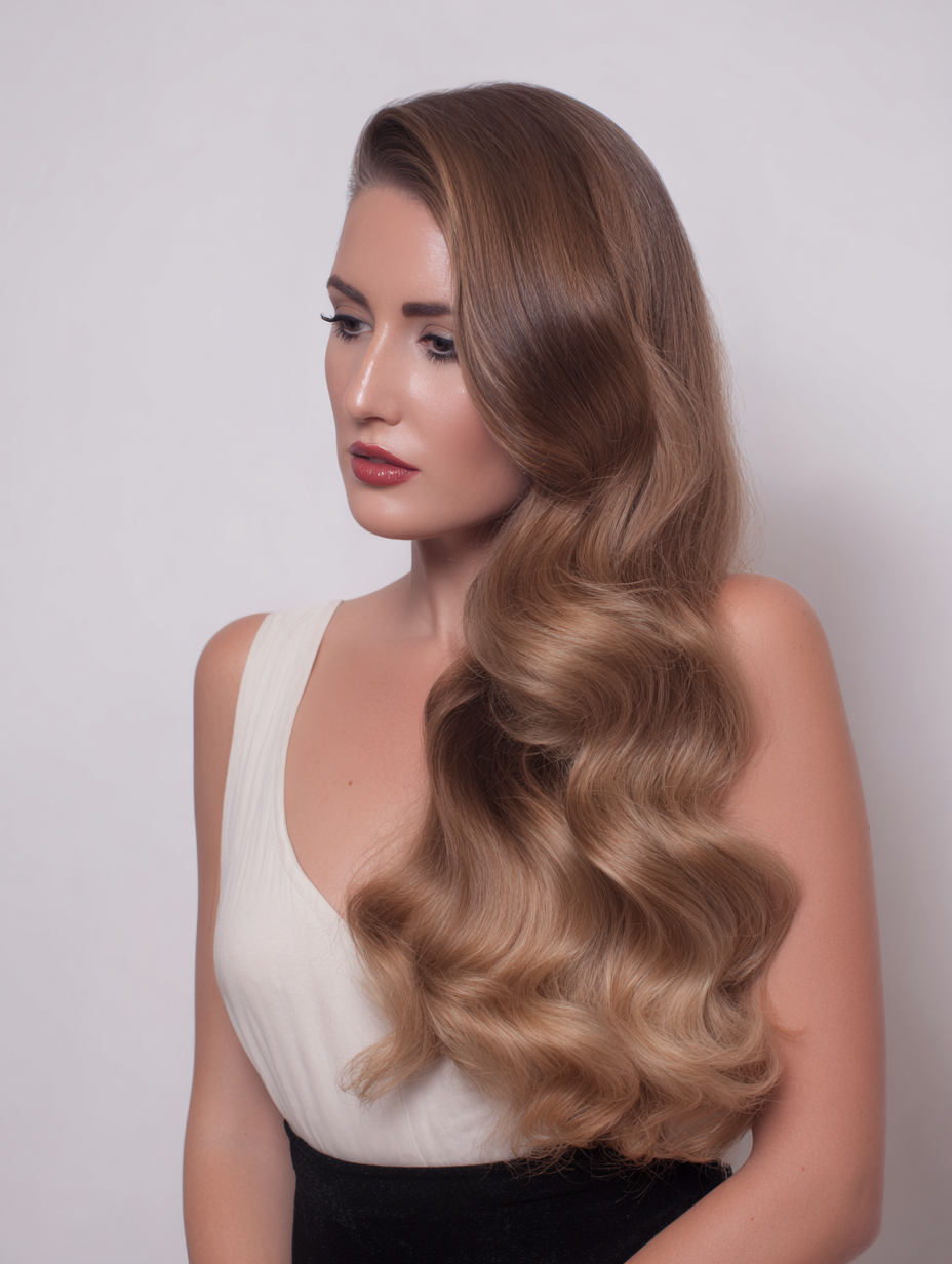 Big, side swept waves are perfect for adding width and soft movement to an oblong face shape.