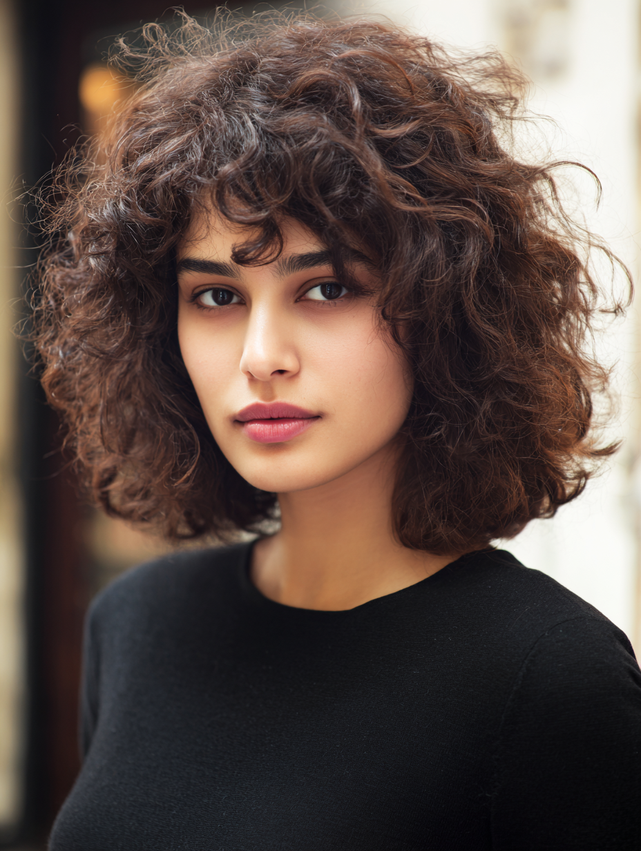 Layers throughout prevent heaviness while encouraging bounce and shape. A diffuser and curl cream help define texture without frizz.